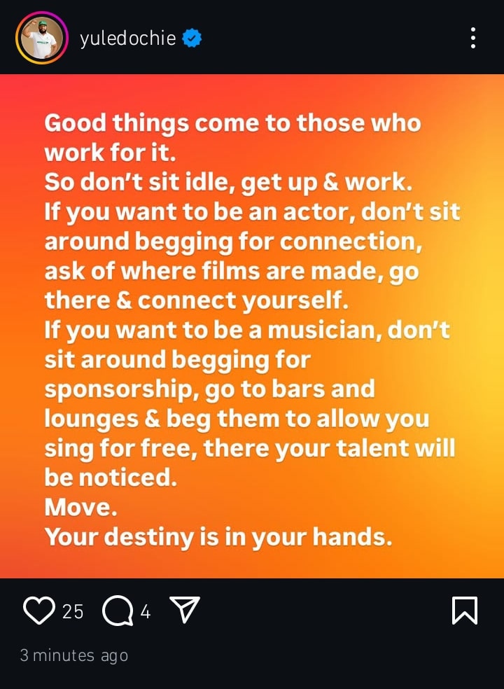 Nollywood actor, Yul Edochie has issued a warning to actors and musicians in the country.