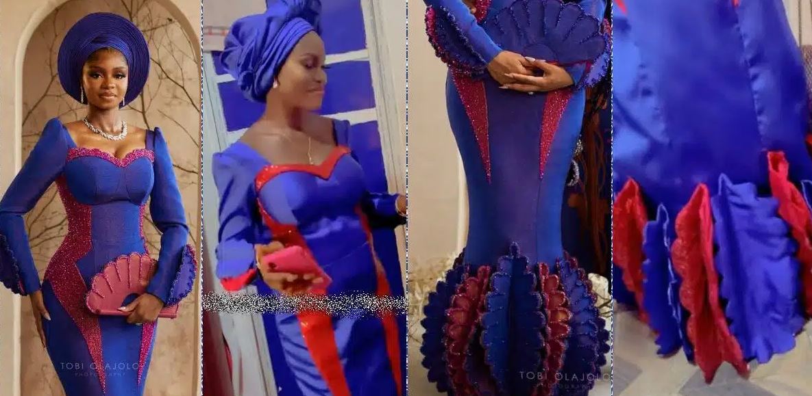 However, instead of asooke, she used glossy satin, giving the recreation a distinct texture and finish.