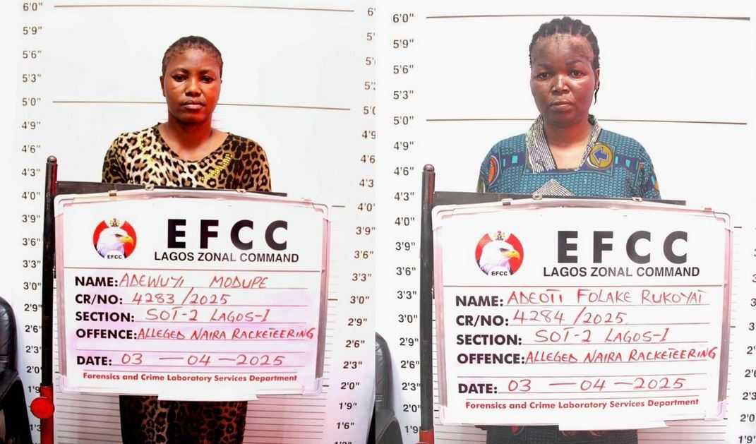 Two women, Folake Adeoti and Modupe Adewuyi, were sentenced to one year imprisonment each by Justice Yellin Bogoro of the Federal High Court, sitting in Ikoyi, Lagos, on Friday, May 2, 2025, for hawking Naira notes.
