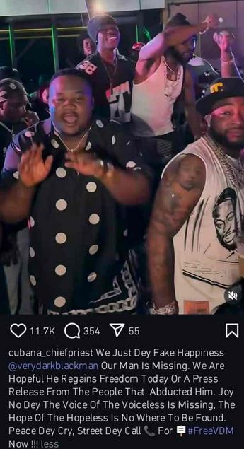 “We Just Dey Fake Happiness @verydarkblackman Our Man Is Missing. We Are Hopeful He Regains Freedom Today Or A Press Release From The People That Abducted Him. Joy No Dey The Voice Of The Voiceless Is Missing, The Hope Of The Hopeless Is Nowhere To Be Found. Peace Dey Cry, Street Dey Call.