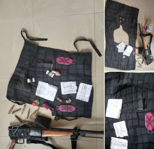 A locally fabricated automatic rifle, eight live rounds of ammunition, a locally made black vest and a bunch of charms were recovered from the suspect.