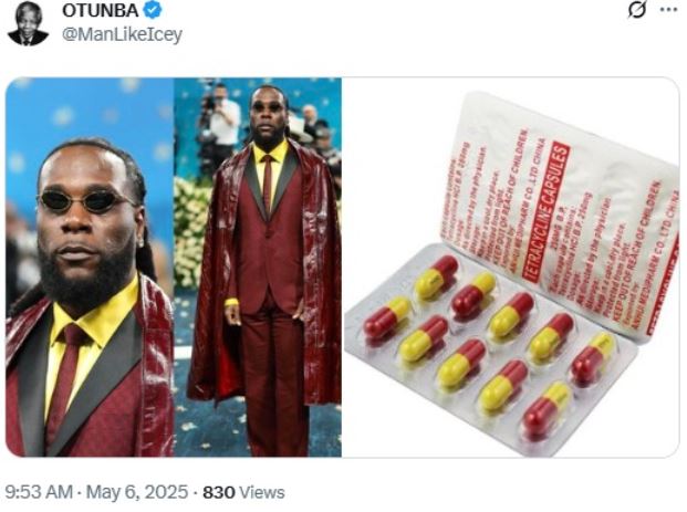 An X user has taken to the microblogging app to troll Grammy-winner, Burna Boy, over his choice of outfit to the METGALA2025.