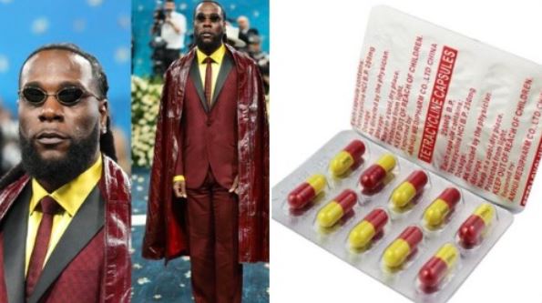 The X-user who assumed the role of a fashion police, compared Burna's outfit to a Tetracycline tablet, aka red and yellow capsule.