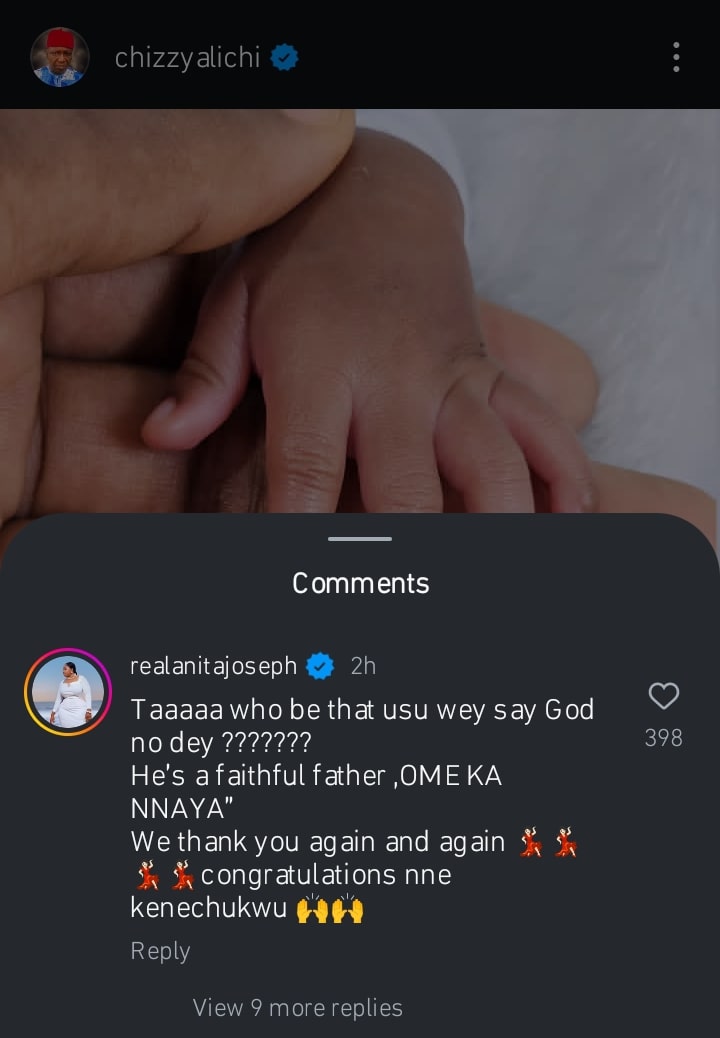 “Taaa who he that usu wey say God no dey? He’s a faithful father, Ome Ka Nnaya. We thank you again and again. Congratulations nne”