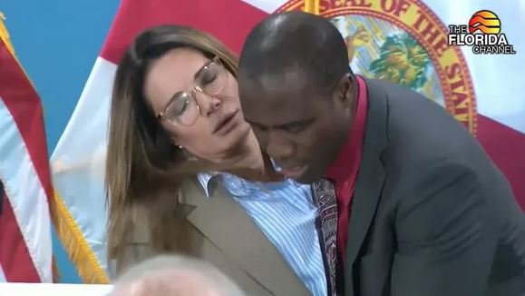 Fortunately, Florida Surgeon General Joseph Ladapo was nearby and quickly caught her, easing her into a chair.