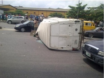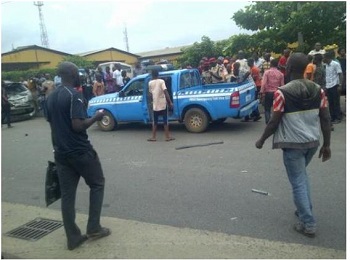 An awful incident took place yesterday afternoon, 25th of June, 2015 at Cele Ijesha in Lagos state after a driver running away from the police for unknown reasons drove into other vehicles at top speed.