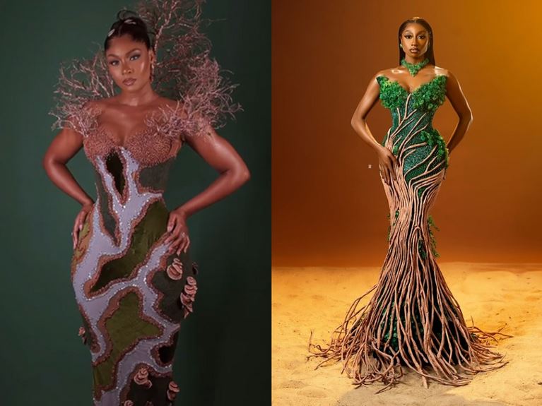 Osas Ighodaro, the popular Nollywood actress, and Doyin, the BBN star, turned heads at the 2025 AMVCA with their breathtaking nature-themed outfits—an unexpected but bold style move.