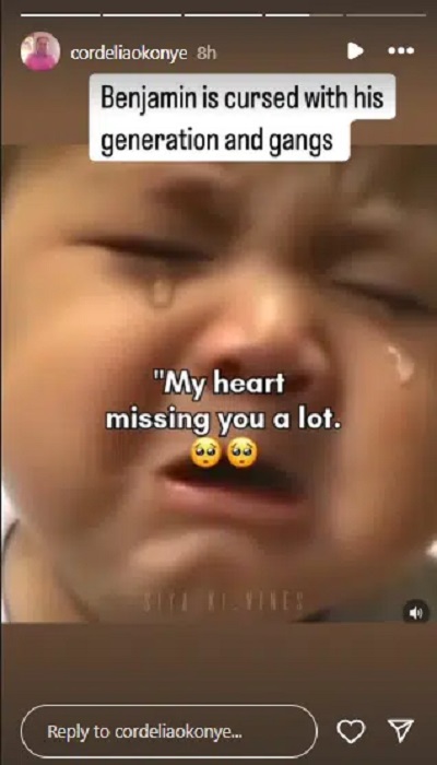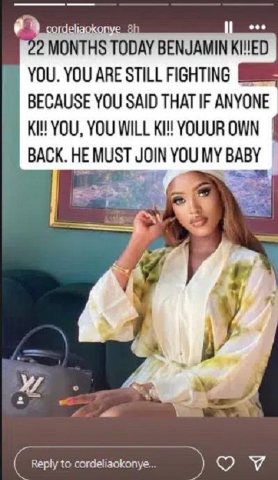 “22 months today Benjamin killed you. You are still fighting because you said that if anyone kill you, you will kill your own back. He must join you my baby.”