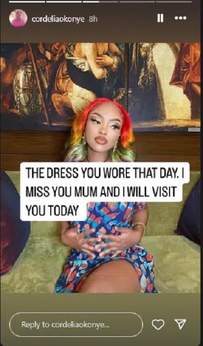 The late mother of Augusta Onuwabhagbe, Mrs. Cordelia Okonye has taken to social media to mourn her daughter 22 months after her demise.