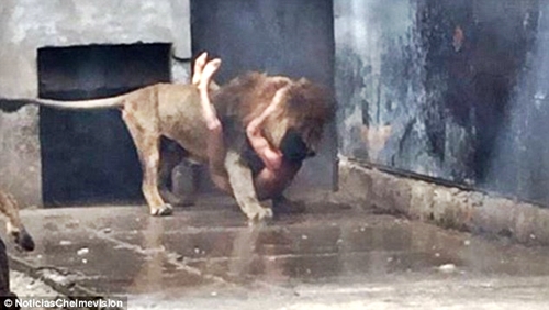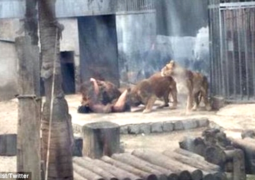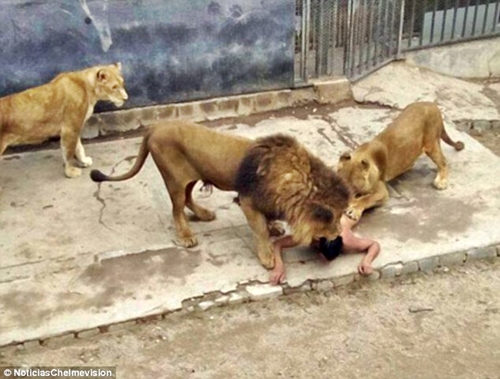 Once inside, the lions reportedly immediately pounced on him and began to 'play' with him. At this point, zookeepers intervened in the attack and shot the two lions in order to save his life.