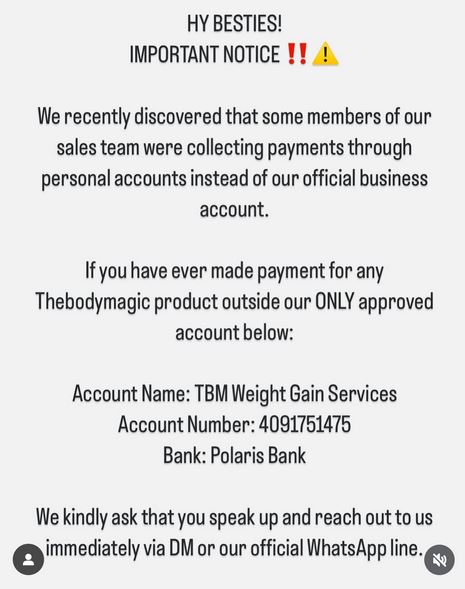 Thayour issued a public disclaimer stating the official business account number and warned customers to come forward if they had ever been directed to pay into any alternative account.