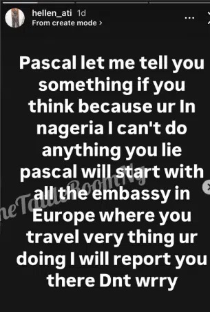 According to Hellen, she intends to bring him down by going to different embassies to report him.