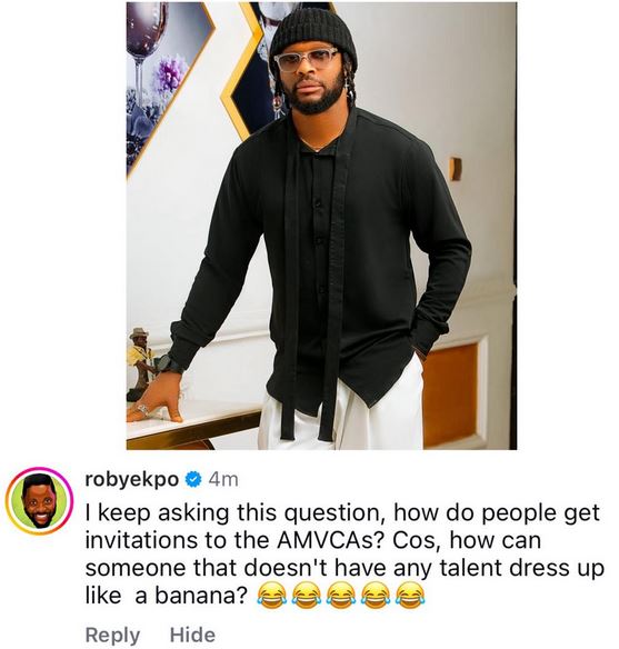 In his words: "I keep asking this question, how do people get invitations to the AMVCAs? Cos, how can someone that doesn't have any talent dress up like a banana?"