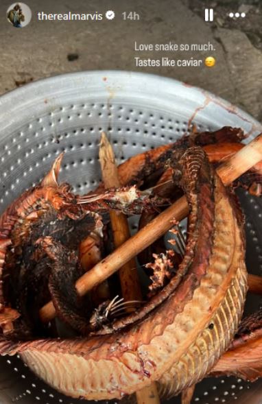 Marvis Nkpornwi, the Big Brother Naija 2017 4th runner up, has declared her love for snake meat. She shared a photo of smoked snake meat on her Instagram story last night. “Love snake so much. Taste like caviar,” she captioned the post.