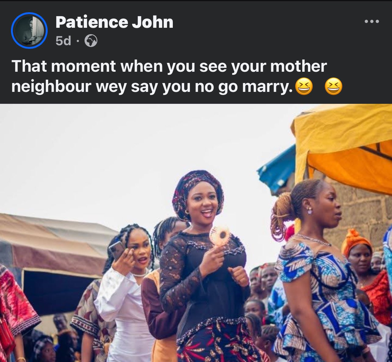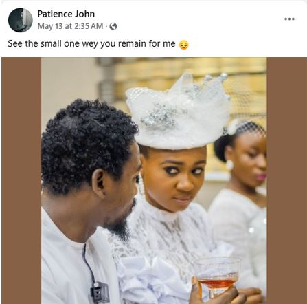 Patience John, who got married this month, has been sharing photos from the ceremonies with hilarious and witty captions accurately complementing her facial expressions.
