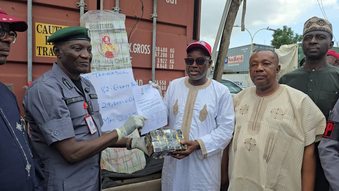 "The banned Tramadol 250mg in unapproved pack sizes, which had been smuggled into the country by criminal traffickers, was handed over to NAFDAC alongside the suspect for further investigation. The seizure is valued at ₦24.6 million.