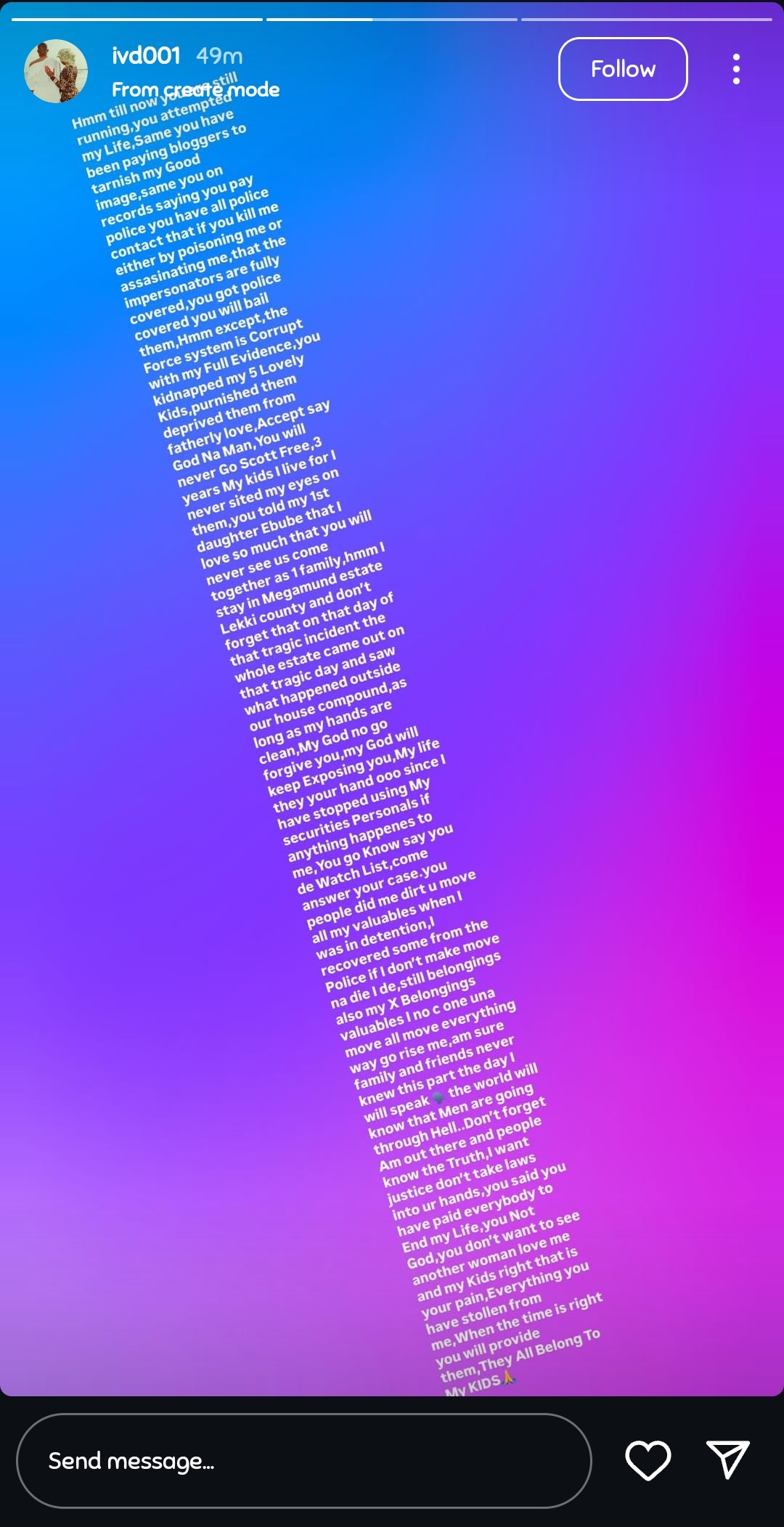 “Everything you stole belongs to my kids. The day I speak, the world will know that men are going through hell too,” he warned.