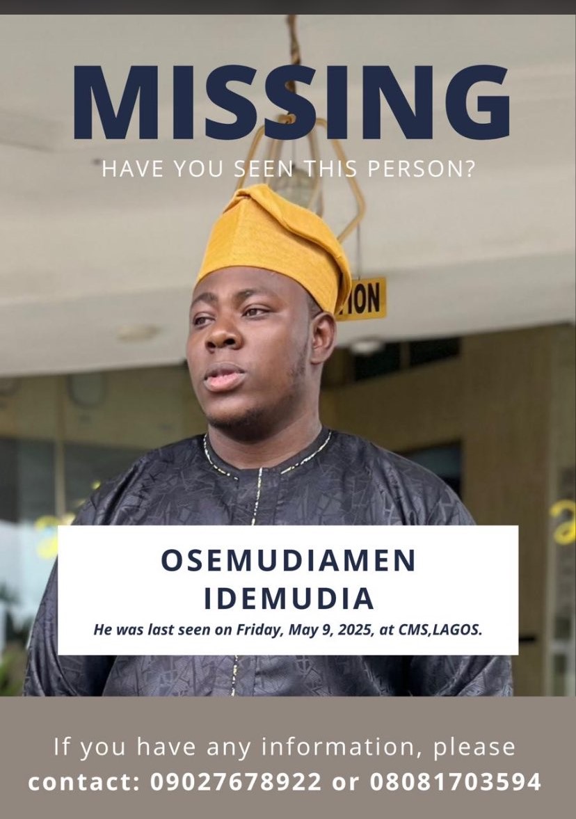 Idemudia, 26, who worked in a commercial bank located in the Ikota area, was last seen on the evening of May 9 around CMS, Lagos Island.