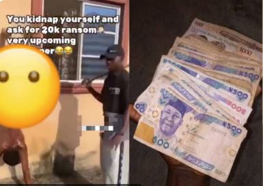 Sharing the video, the X user wrote: “You kidnap yourself and ask for ₦20k ransom. Very upcoming kidnapper.”