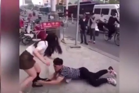 The short clip, shot in the streets of Huai’an City, in East China’s Jiangsu Province, show the scenes unfolding in a popular shopping district.