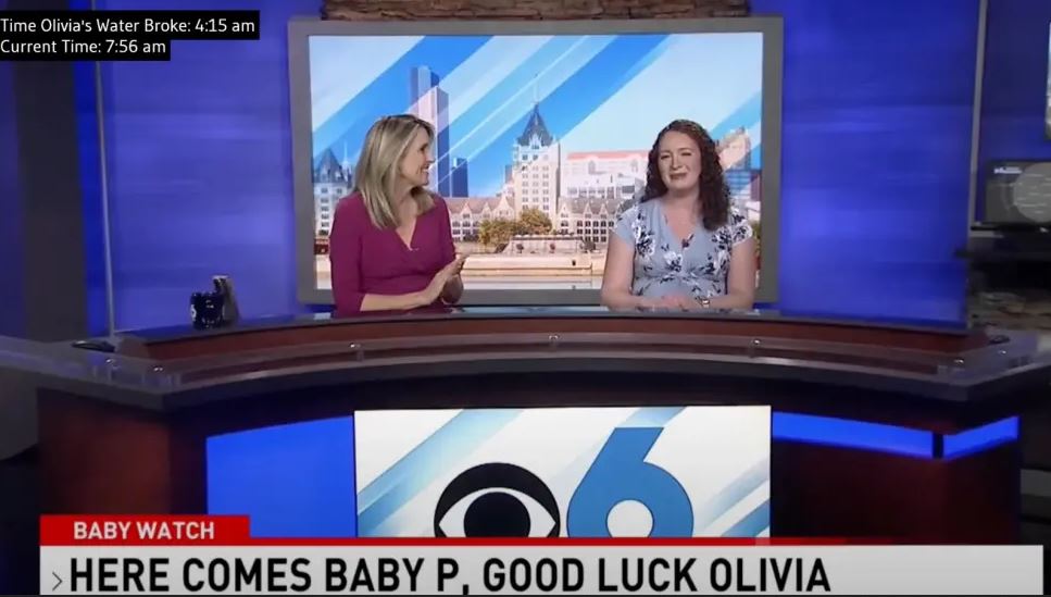 “This isn’t April Fools — Olivia’s water broke… in the newsroom, right?” her co-anchor Julia Dunn asked during a Facebook Live video just before the broadcast began. “In the newsroom,” Jaquith confirmed, smiling.