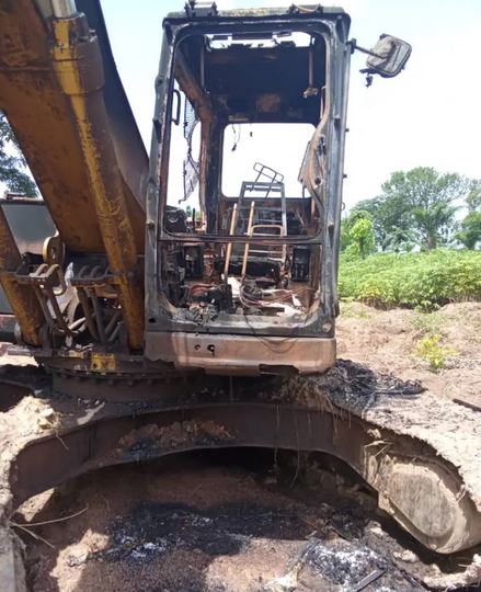 Suspected warlords from the Abaomege and Ishinkwo communities in Onicha Local Government Area of Ebonyi State have reportedly set fire to a government excavator being used to demarcate the disputed territory.