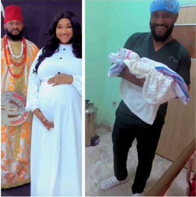 In a video that was shared online, Yul Edochie was seen cradling the newborn.