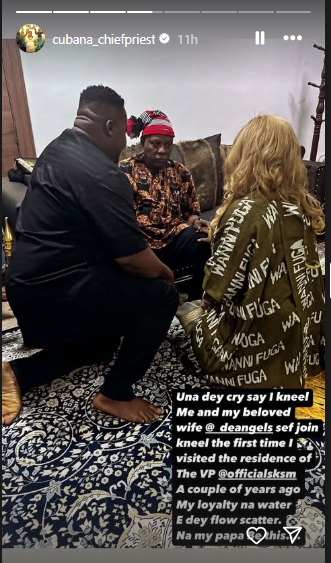 Socialite, Cubana Chief Priest has replied those criticizing him for kneeling before vice president, Kashim Shettima.