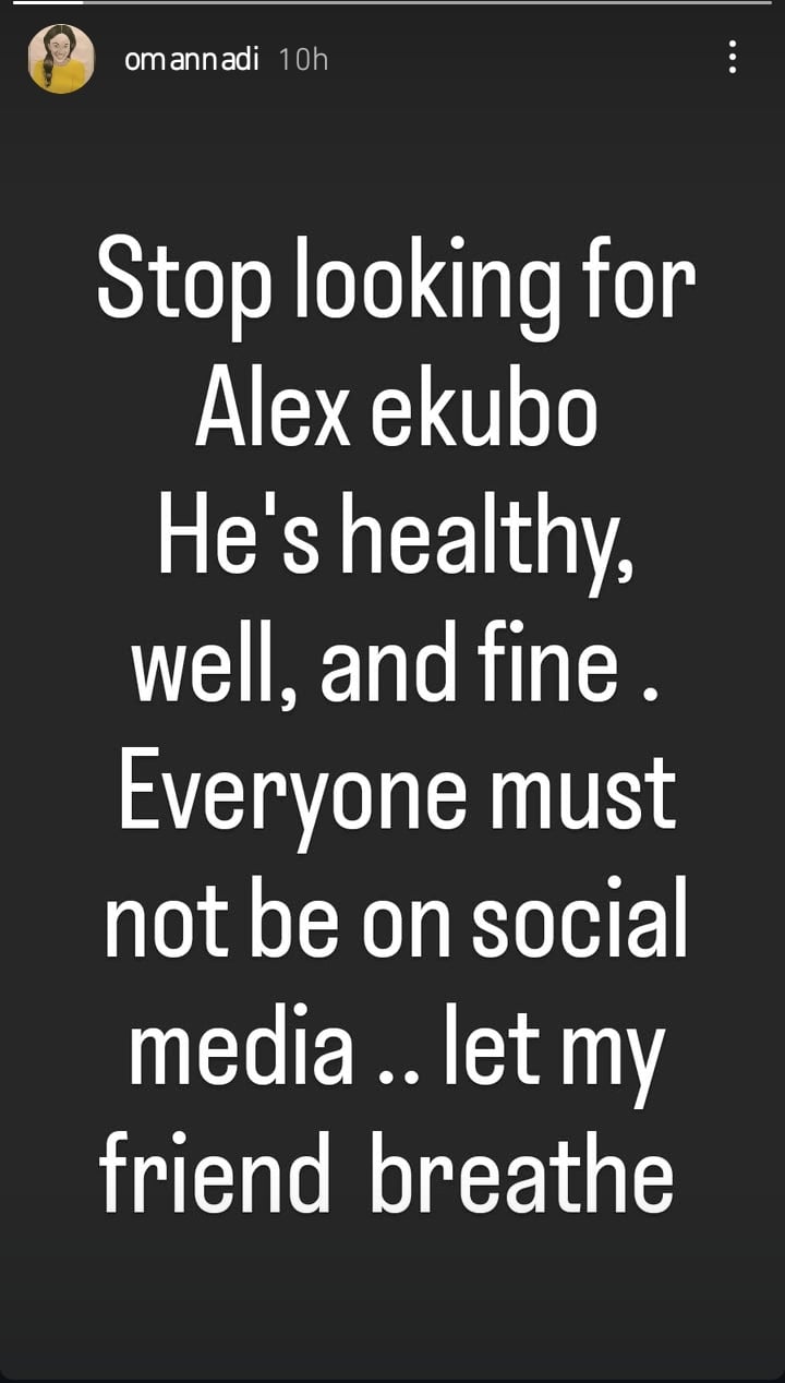 Taking to her Instagram story, Oma told them to stop looking for Alex as he is healthy, well and fine.
