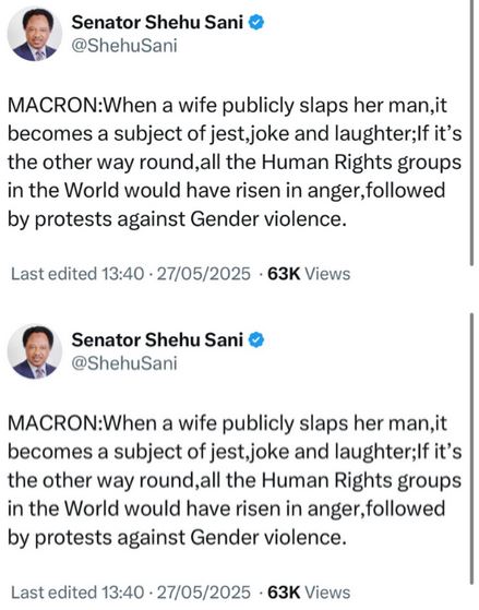 Shehu Sani, a former federal lawmaker, has reacted to the viral video featuring French President Emmanuel Macron and his wife, Brigitte.