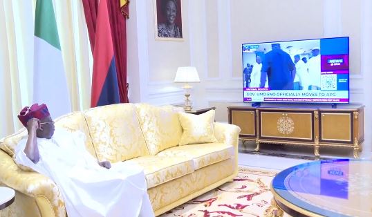 President Bola Ahmed Tinubu, on Friday, watched and officially acknowledged the defection of Akwa Ibom State Governor, Umo Eno, from the Peoples Democratic Party (PDP) to the All Progressives Congress (APC) during a televised broadcast.