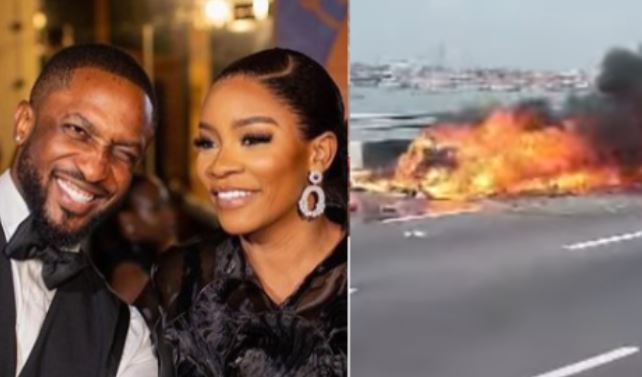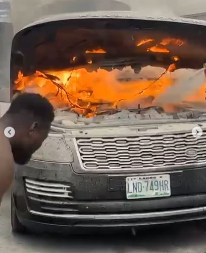 Sharing videos from the scene on Instagram on Saturday, Deola revealed that the incident occurred around 4pm on Friday when their vehicle caught fire and was completely destroyed.