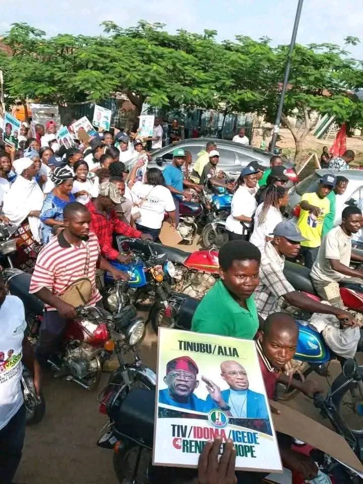 The youths under the aegis of pro-Tinubu/Alia support groups, stormed major streets of Makurdi, capital city of Benue State, drumming support for second terms for President Bola Tinubu and the state governor, Hyacinth Alia.
