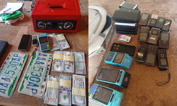 Items recovered include 461 counterfeit USD, 4 POS, 13 smartphones, 29 keypads, 2 plate numbers, a box and other documents.