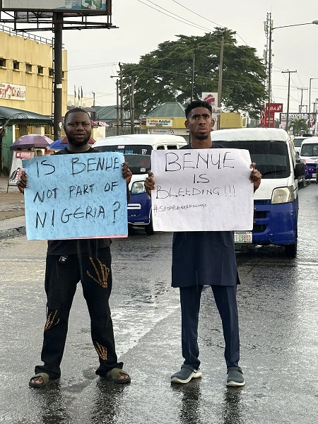 The protesters carried placards that read, “Benue Is Bleeding”, “Is Benue Not Part Of Nigeria?”, “StopBenueKillings”, “May Tinubu Not Happen To Us In 2027”, among others.