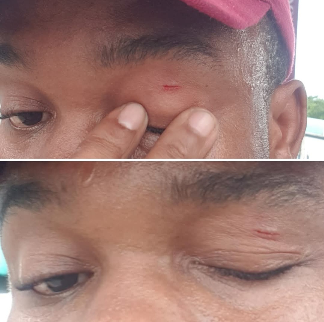 As they approached him, one of them broke a bottle and aimed it at him, but fortunately, he missed.