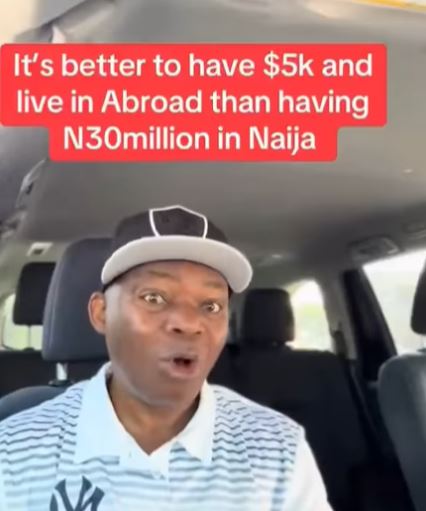 A Nigerian man on X has stirred conversation online by sharing a video that contrasts the experience of living in Nigeria with ₦30 million versus living abroad on just $5,000.