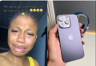 A lady who recently graduated from Moshood Abiola Polytechnic (MAPOLY) has been reduced to tears after losing her iPhone 14.