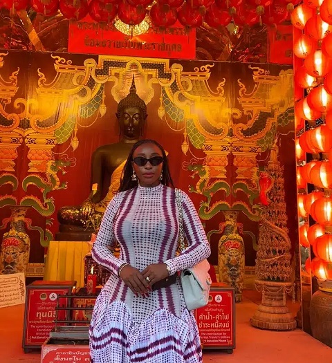Nollywood actress Ini Edo has visited a Buddha temple in Thailand.