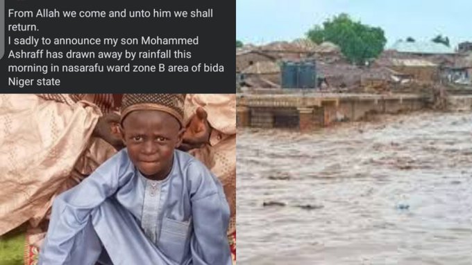 A tragic incident occurred in Nasarafu Ward, Bida Local Government Area of Niger State, where a seven-year-old boy, Mohammed Mohammed, lost his life after being swept away by floodwaters triggered by heavy rainfall.