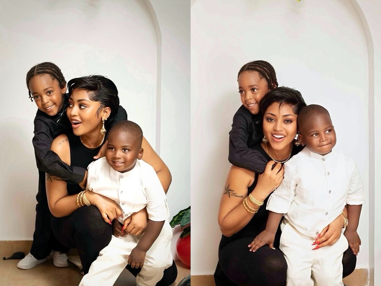 Actress Regina Daniels Nwoko is joyfully celebrating the birthdays of her sons, Moon and Kharl, as they turn five and three respectively.