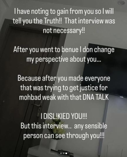 The prominent Nigerian content creator and philanthropist aired her opinion on Verydarkman's recent talk about late singer, Mohbad.
