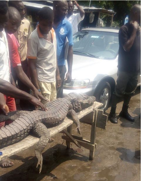 A big reptile has been killed in one of the massive canals in the Festac Town, Amuwo Odofin local government area of Lagos.