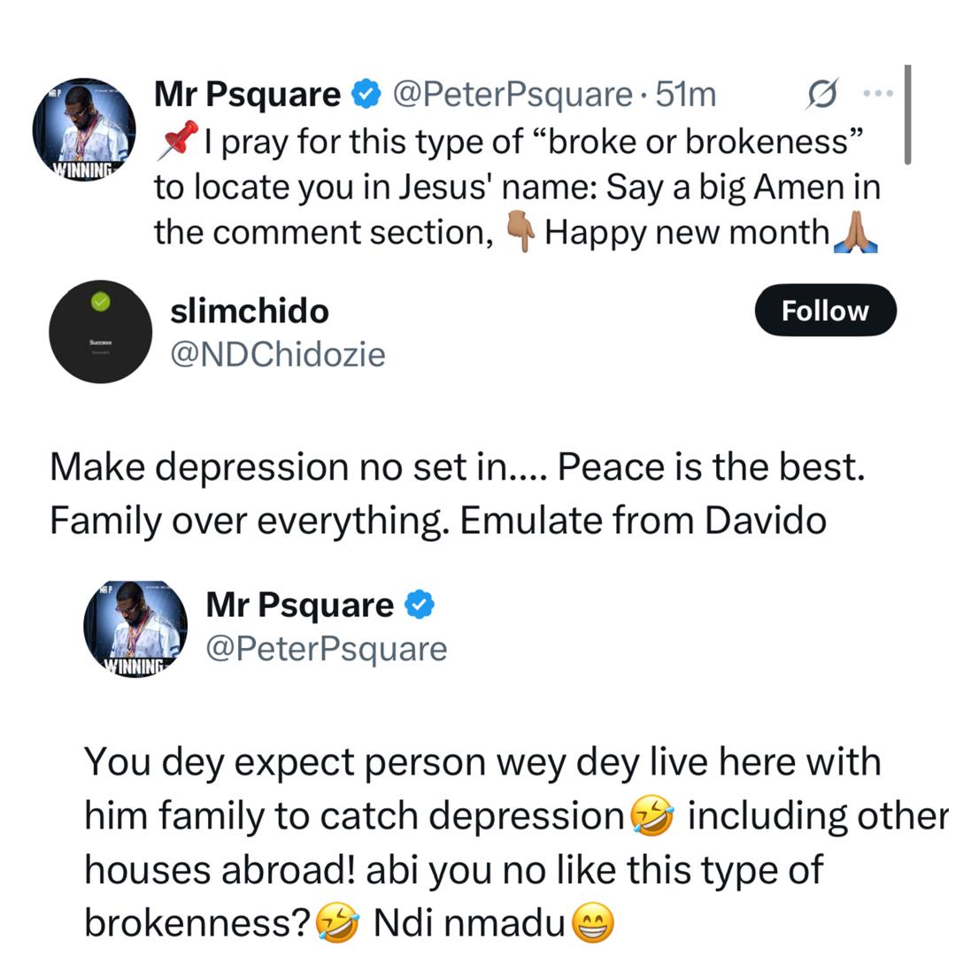 Peter Okoye Reacts After X User Asked Him to Emulate Davido And Allow Peace Reign Between Him and His Brothers