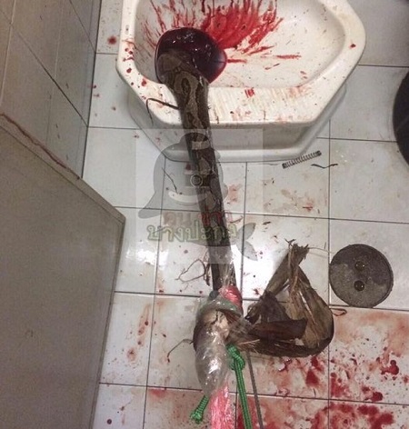 According to Bangpakong News, Atthaporn Boonmakchuay was easing himself in the toilet in his home east of Bangkok when a python emerged through the bowl and bit his p*nis.