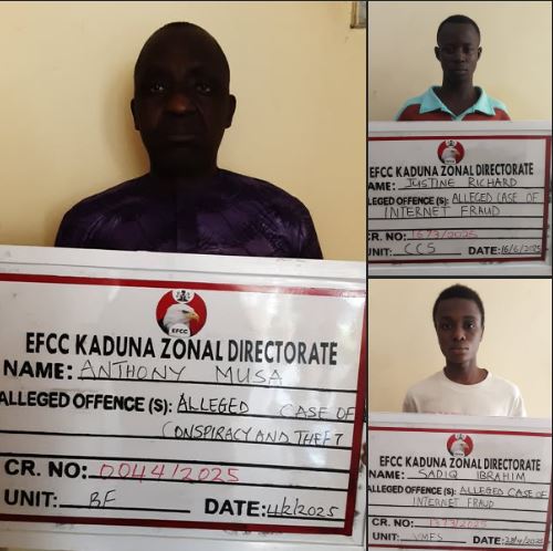 Three suspected internet fraudsters, Justine Richard, Sadiq Ibrahim, and Anthony Musa have been jailed in Kaduna.