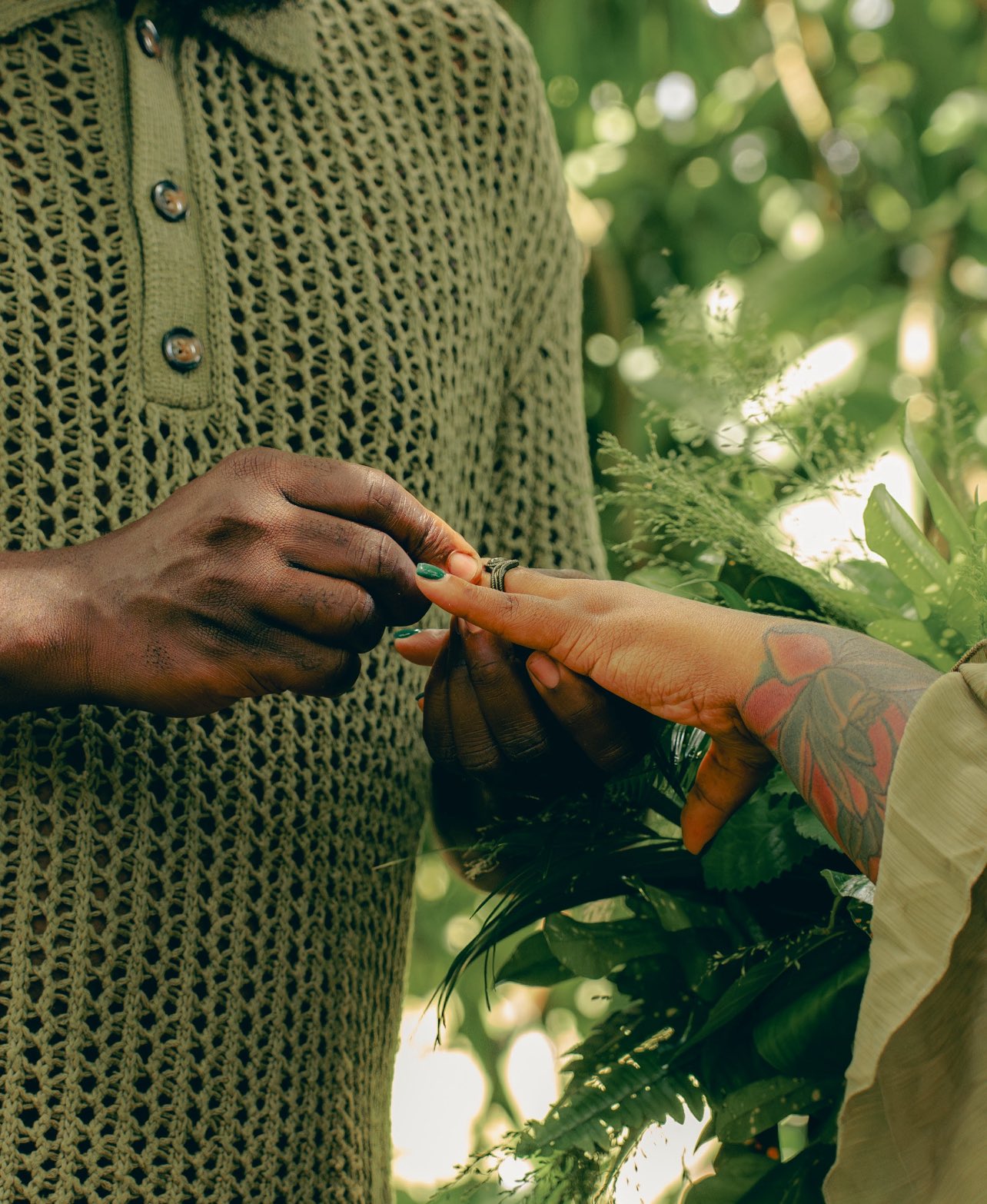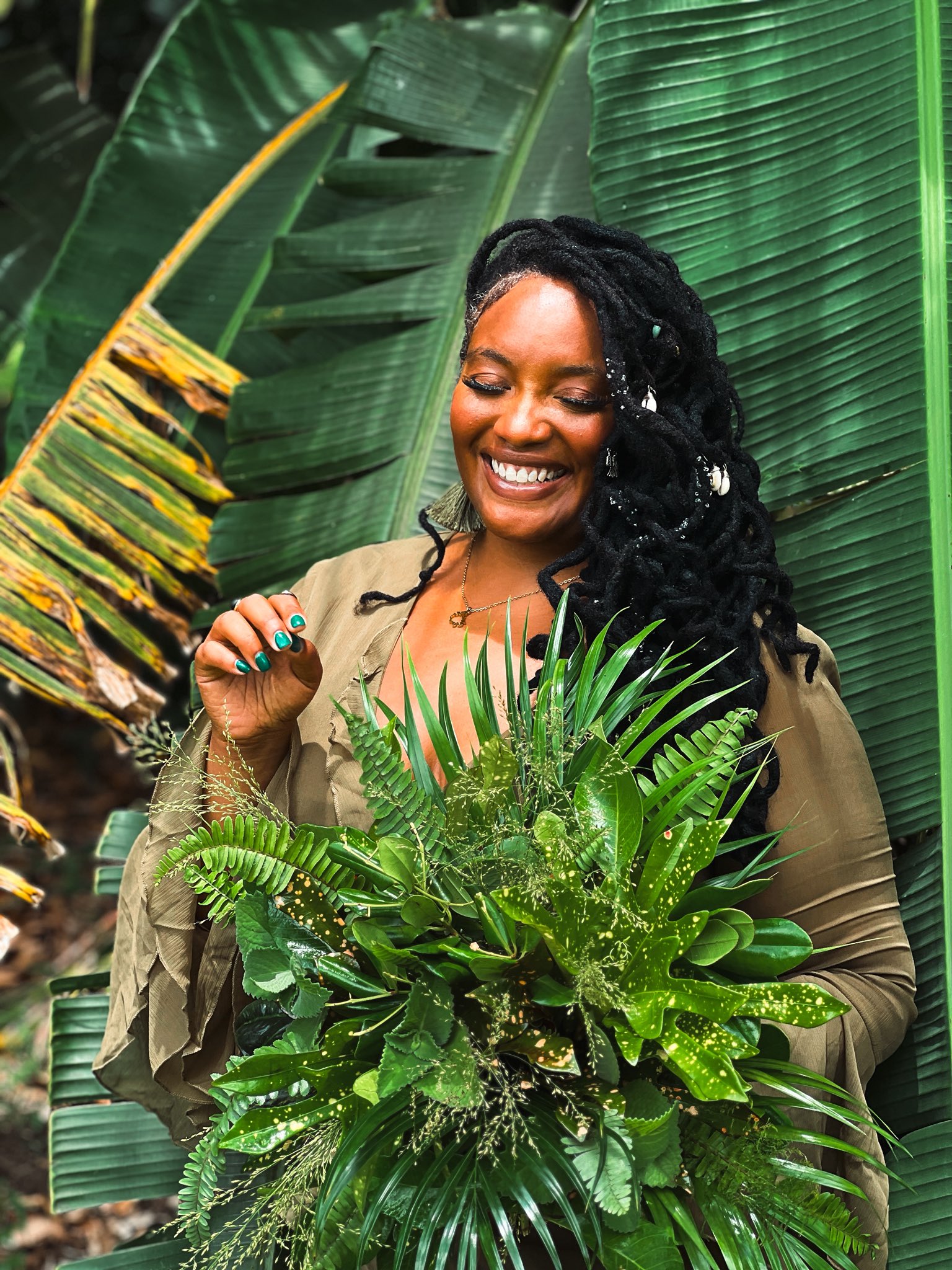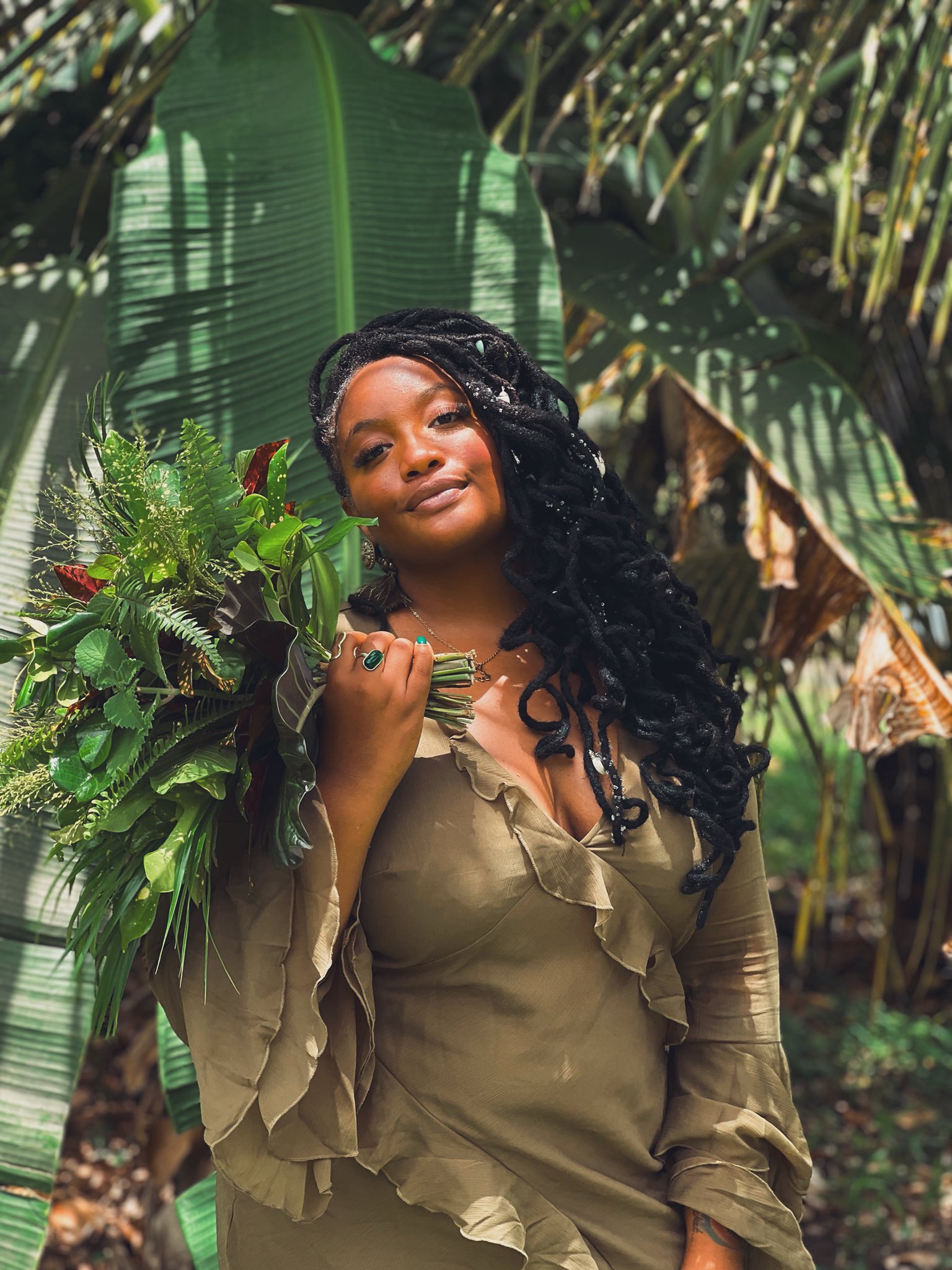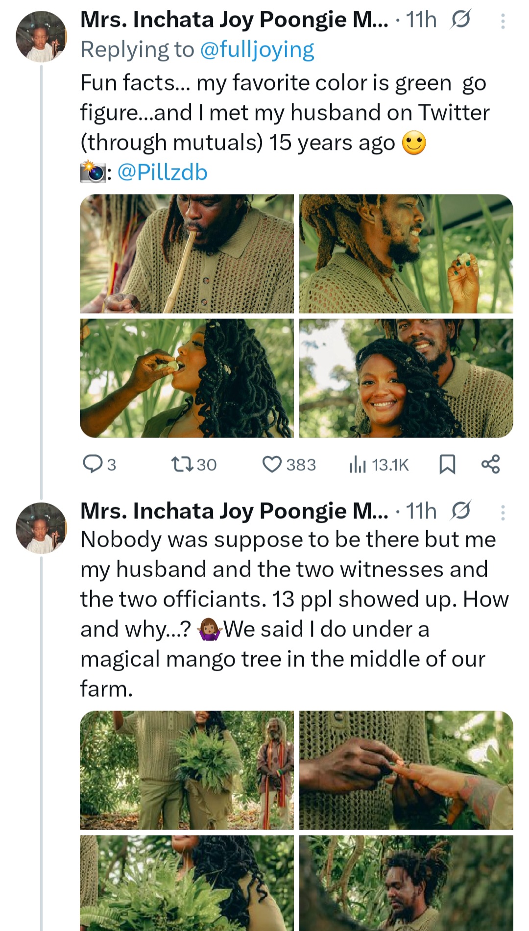 For her bouquet, the bride chose flowers from her farm as they said their vows under a mango tree in the middle of their garden.