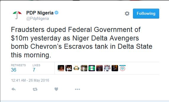 Further tweet have it that Ibe Kachikwu who brokered the deal on behalf of the federal government was scammed by fake representatives after the Niger Delta Avengers went ahead to blow up another oil facility immediately the funds exchanged hands.