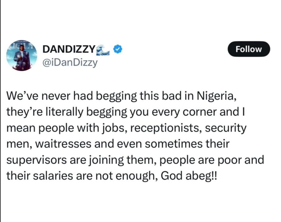 We’ve Never Had Begging This Bad in Nigeria – Rapper Dandizzy Laments Over High Rate of Poverty In Nigeria