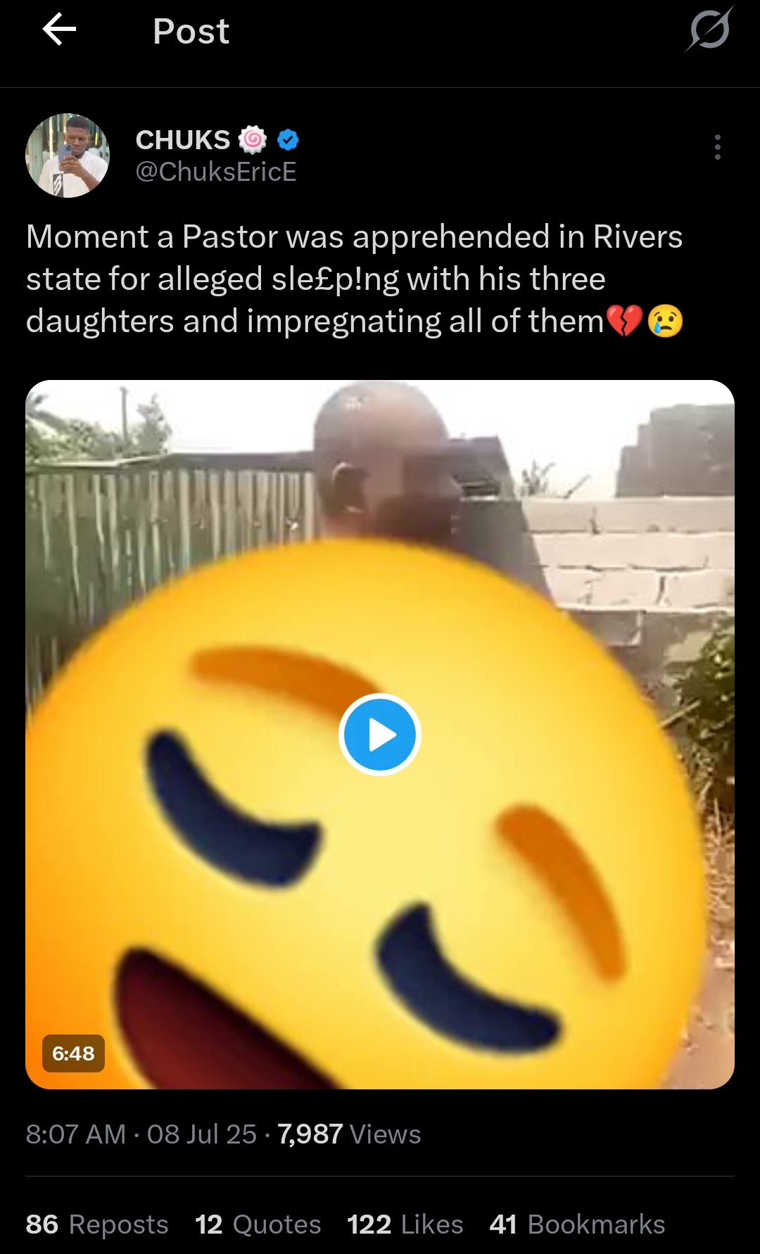 Pastor Exposed After Impregnating His 3 Daughters In Port Harcourt